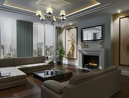 Напольные. Эти самостоятельные конструкции можно поставить на пол в любом месте комнаты. Они имеют разную форму и размер. Напольные камины подходят для больших пространств и могут служить центральным элементом современного интерьера.
