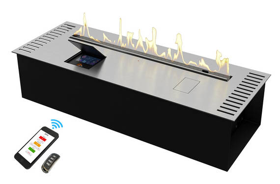 Автоматический биокамин Zefire Automatic 800 является настоящим прорывом в современном производстве. Благодаря специальной технологии управлять прибором можно при помощи смартфона, планшета или другого гаджета. При этом такое устройство совершено безопасно в использовании, не выделяя запаха, гари и дыма. В случае возникновения любых аварийных ситуаций камин отключается автоматически. Что касается его охлаждения, то за это отвечают встроенные кулеры. Линия огня: 600 мм.