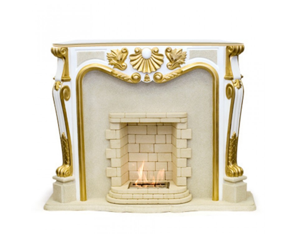 Роскошный портал модели выполнен из литьевого белого мрамора, отделан мраморной крошкой и позолотой.