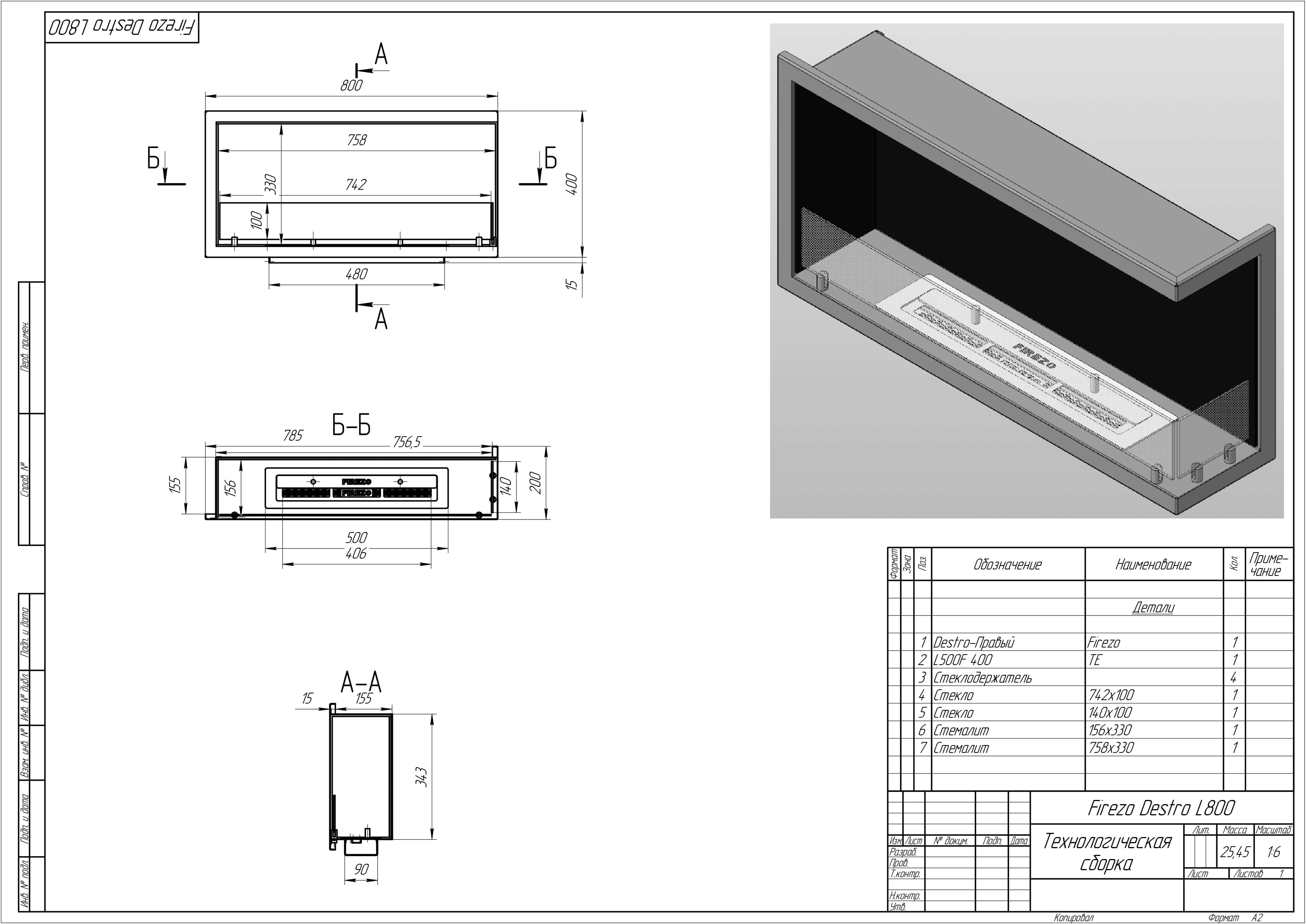 Угловой встраиваемый Биокамин Firezo L'angolo Destro 800