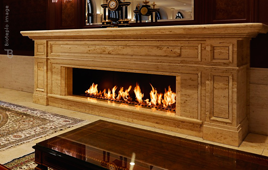 Роскошный встраиваемый биокамин в классическом стиле с порталом из натурального дерева или мрамора (по запросу).