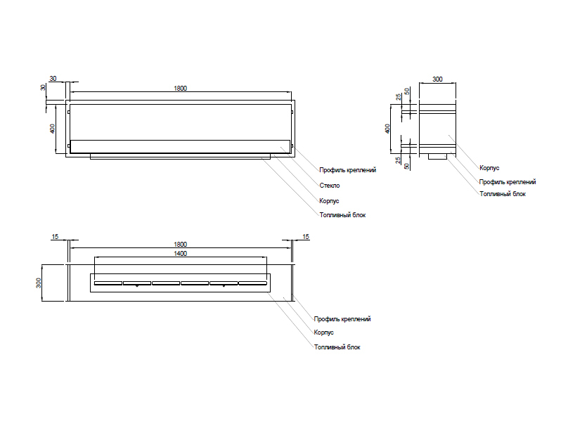 - Габаритные размеры ШxГxВ, (мм): 1800x300x400
