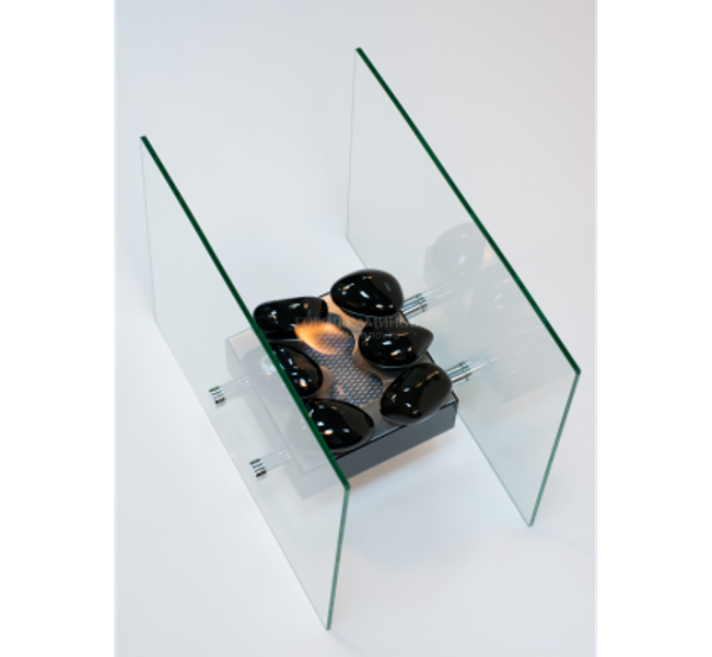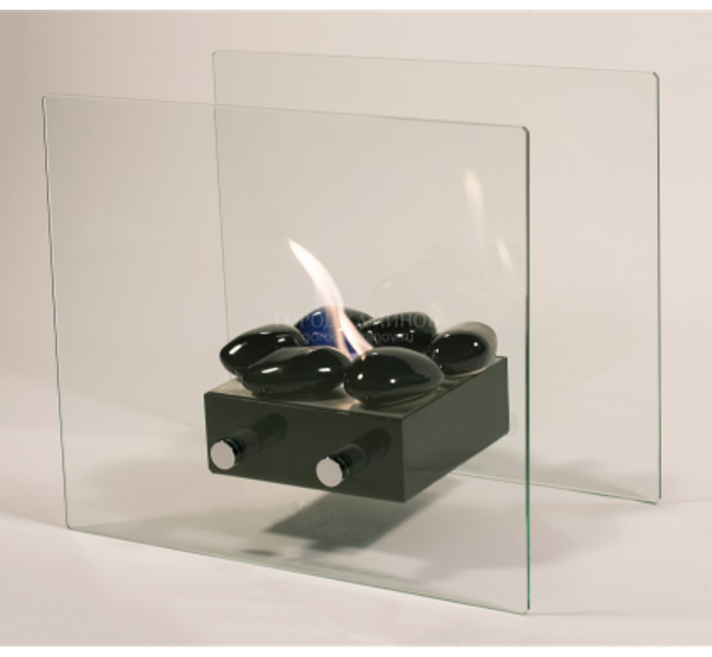 BioKer Mr.Smith - небольшой настольный биокамин с основанием черного цвета и набором черных камней. Стекла - прозрачные. Высокая степень безопасности. При случайном опрокидывании камина специально разработанная конструкция топливного блока не позволит топливу вылиться. Работает на биотопливе. Горение происходит без запаха и дыма, выделяются только водяной пар и углекислый газ в тех же количествах, что и при горении 3 свечей.