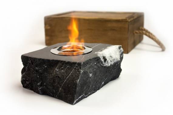 Настольный биокамин Zefire RocK – это современный мини-очаг, вызывающий самые теплые чувства и воспоминания о дарителе. Его пламя горит без дров и золы, не оставляет дыма и копоти. В фирменной упаковке из плотного картона помещается сам биокамин и миниатюрный набор аксессуаров: спички и биотопливо. С ними огонь легко развести когда и где угодно. Эффектным дополнением для элитного презента станет «старинный» ларец из натурального дерева. Смолистый запах хвои превратит розжиг каменного биокамина в личный ритуал удачи. Так как данные модели производятся из природного камня, то каждый биокамин по-своему уникален. У каждого камина будет свой уникальный рисунок и узор на камне.