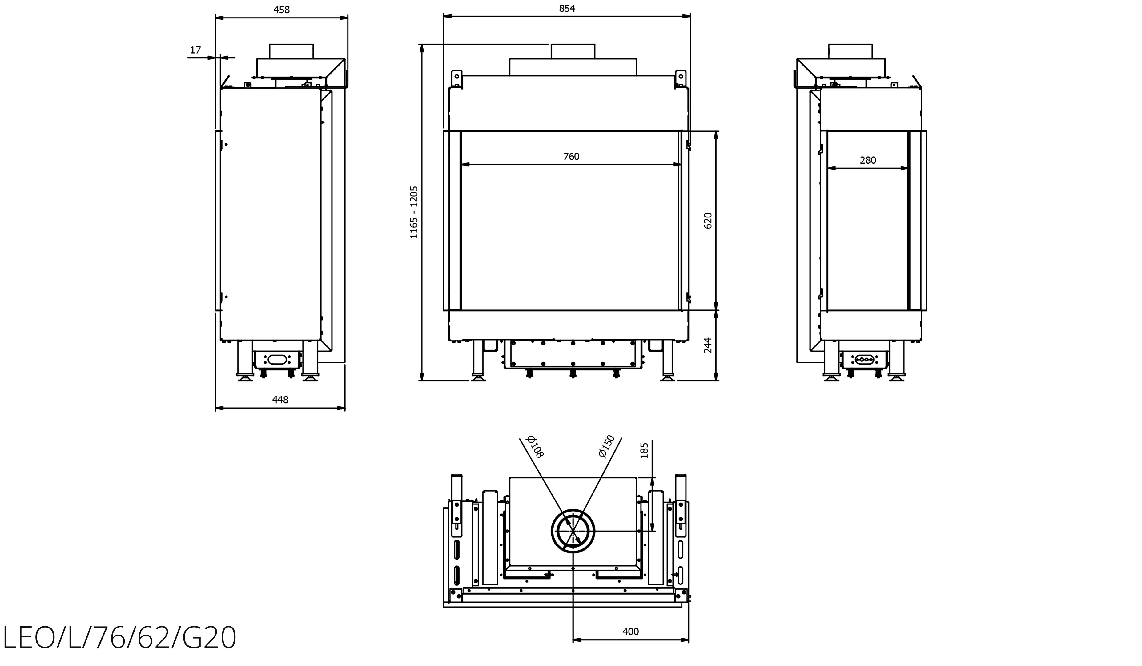 Газовый камин Kratki LEO/L/76/62/G20 левая магистральный газ