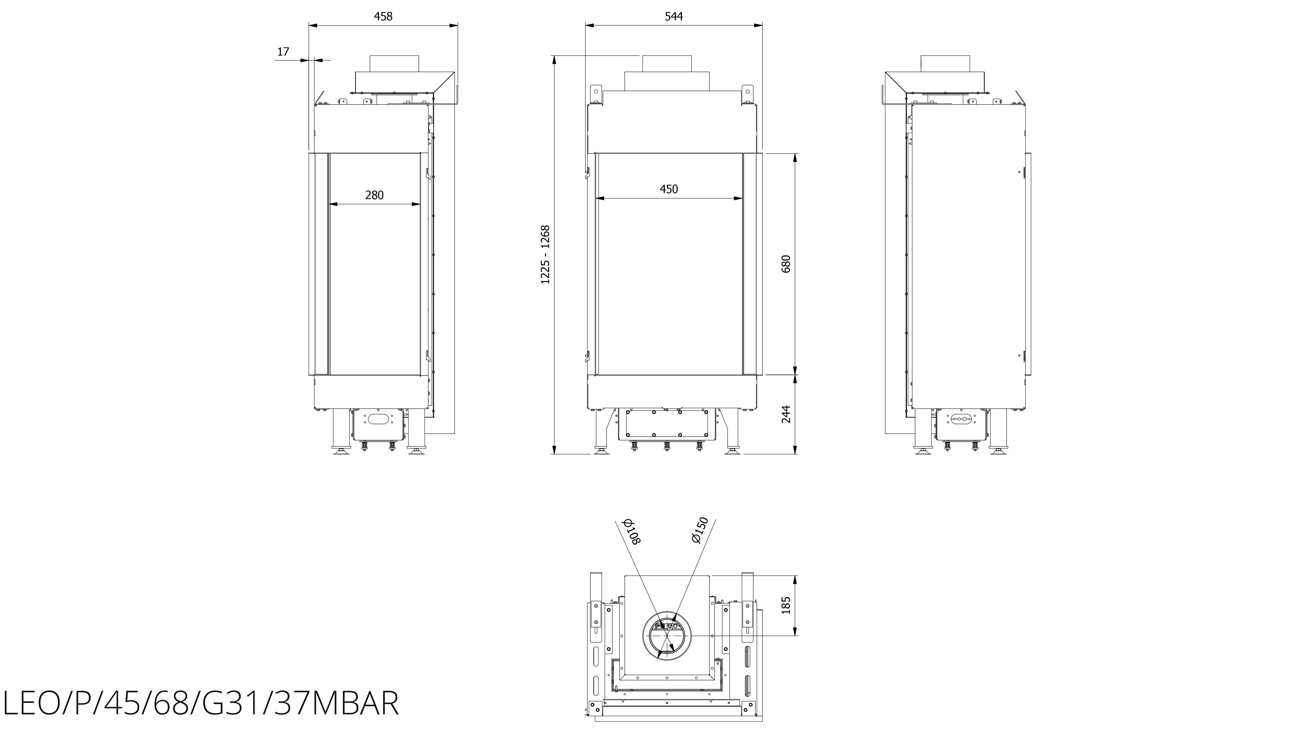 Газовый камин Kratki LEO/P/45/68/G31/37MBAR правая баллонный газ