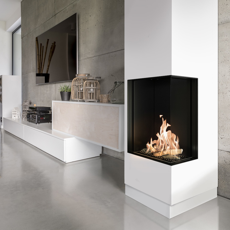 • Беспрепятственное созерцание огня благодаря невидимой рамке фасада и минимальному количеству видимых стальных элементов.