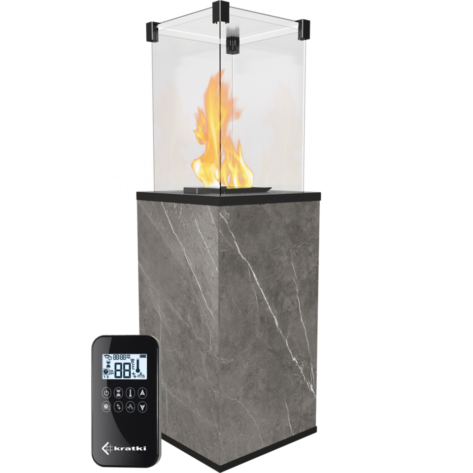 Газовый обогреватель Kratki Patio/G31/37MBAR/Q/N/P/G Naturali Pietra Grey керамогранит пульт ДУ может похвастаться ярким дизайном, способным стать экспонатом любого уличного кафе, ресторана, дачной беседки, сада, террасы и балкона.