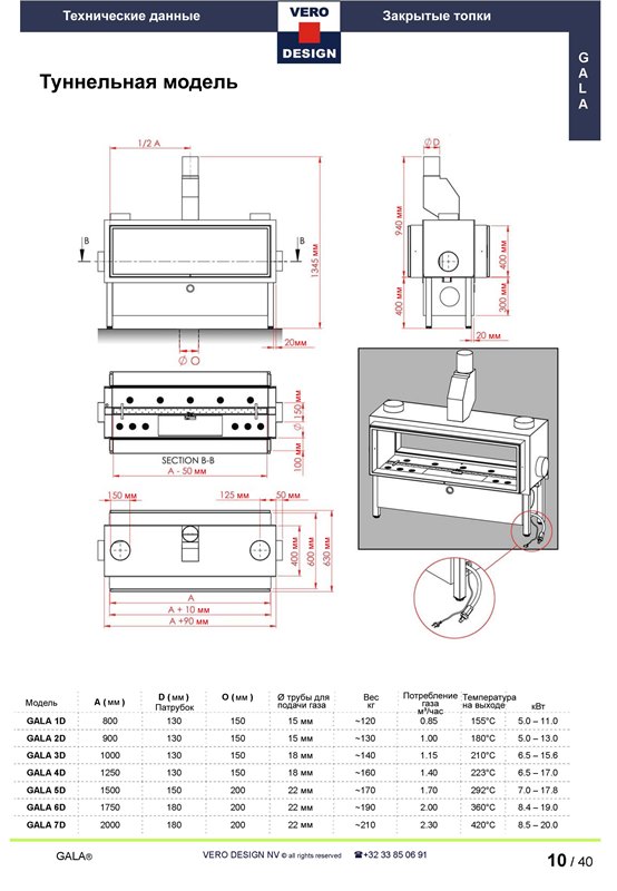 Газовый камин Vero Design Gala GA 8D – туннельная (сквозная) модель с горизонтальными окнами из стекла с двух противоположных сторон. Топка работает от природного газа бутан или баллонного газа пропан, что позволяет устанавливать камин не только в загородном доме, но и в городской квартире. Выражает актуальные на сегодняшний день веяния в создании интерьеров в стиле хай-тек.