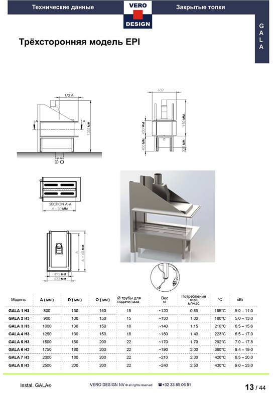 Газовый камин Vero Design Gala GA6 H3