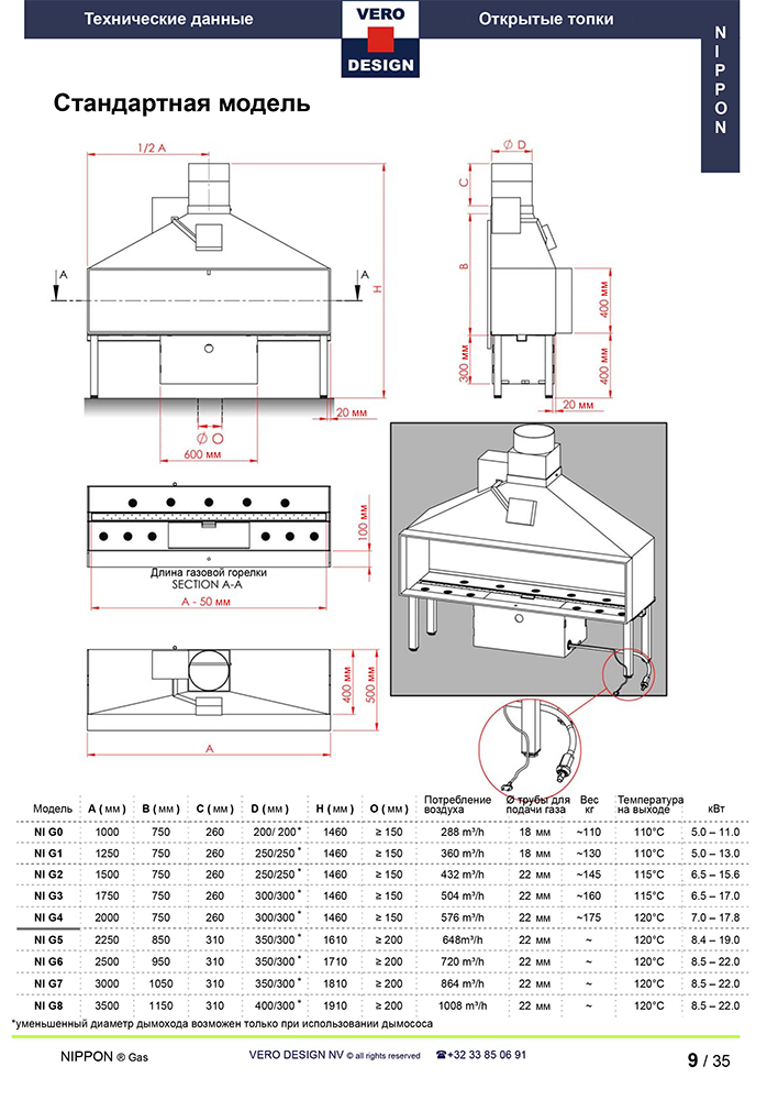 Газовый камин Vero Design Nippon NI G3 D