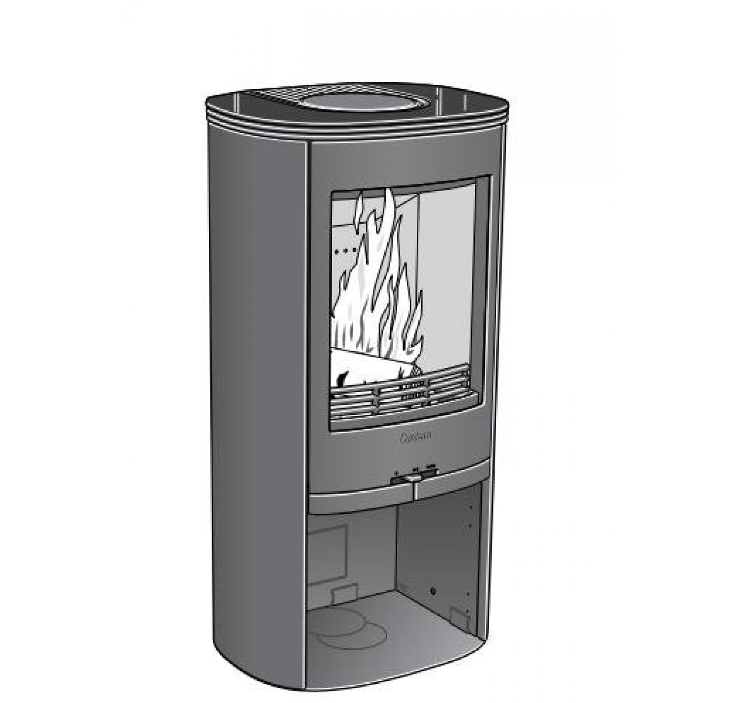 Оснащен поворотной колосниковой решеткой и выдвижным зольником. Отделка: боковые панели - металл; верхняя панель- чугун, сталь или талькомагнезит.