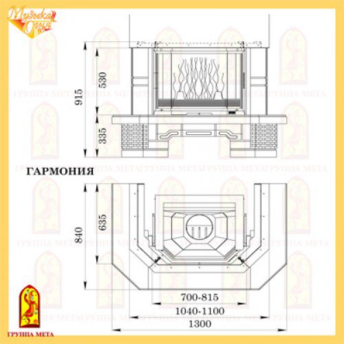 Каминная облицовка Мета Гармония комплектуется с каминными топками с шириной фасада 700 и 850 мм.