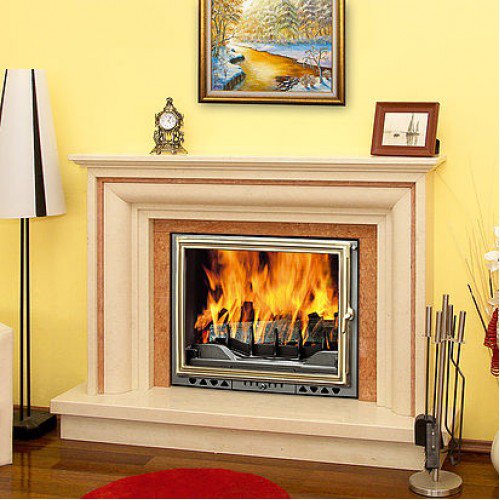 Каминная облицовка Otilia изготовлена из полированного Mocca со вставками из мрамора Roso Algavre. Вариант установки пристенный. Совместима с топками 800*600 мм . Для установки топки комплектуется доборными мраморными пластинами.