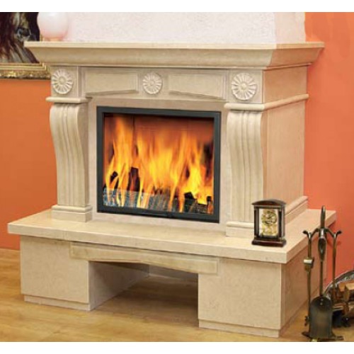 Пристенная каминная облицовка из мрамора мaccив Moca, исполненная в классическом стиле. Вариант пристенный и угловой.