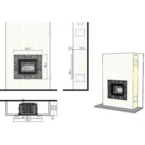 Встроенный камин с обрамлением из огнеупорной стали с декоративным узором. Топка с прямым фасадным стеклом. Подходящие топки: D70 F70L Особенности каминной облицовки: Полувстроенный камин. Резной металл. Технические характеристики каминной облицовки: Общий размер (см) : 103,7 x 0,5 x 89,1 Вес : 60 Кг
