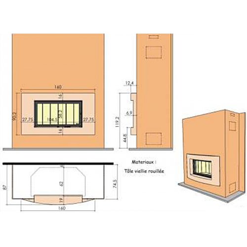 Горизонтальная полукруглая рамка из огнепрочной стали, декорированная под ржавчину. Широкая топка, большой обзор огня. Подходящие топки: D1000/D1200 Особенности каминной облицовки: Встроенный камин. Рамка полукруглая стальная. Ржавые стал. Технические характеристики каминной облицовки: Общий размер (см) 160 x 12 x 91. Топка DESIGN D1200. Вес 20 Кг