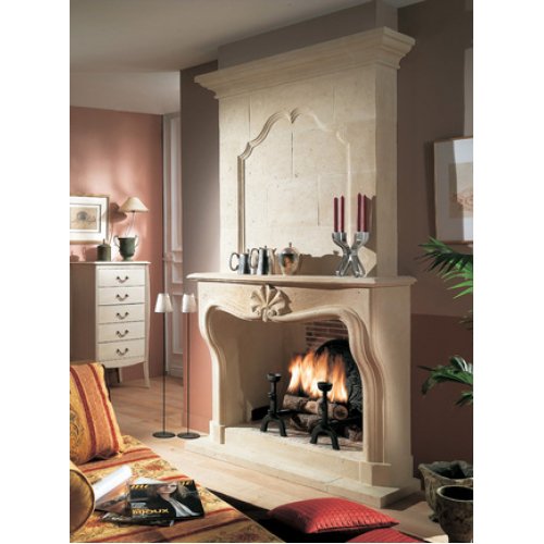 Камень белый патинированный. Кожух в элегантном стиле. Высота с каменной балкой 109 см.