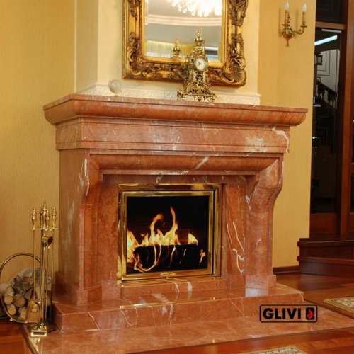 - Камин выполнен из полированного мрамора Rojo Alicante.