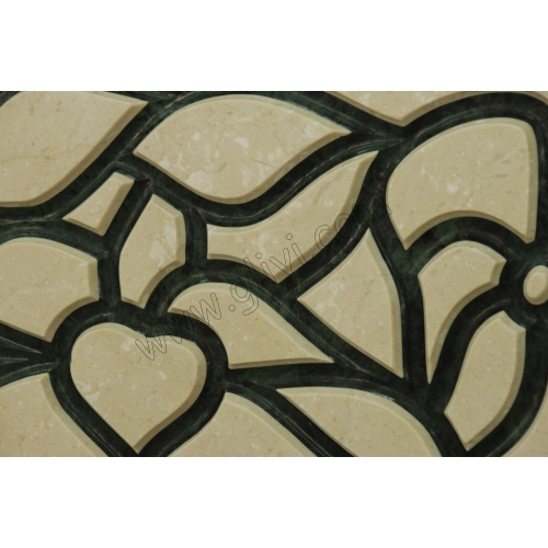 - Камин выполнен из полированного мрамора Rojo Alicante, Crema Marfil, Verde Guatemala.