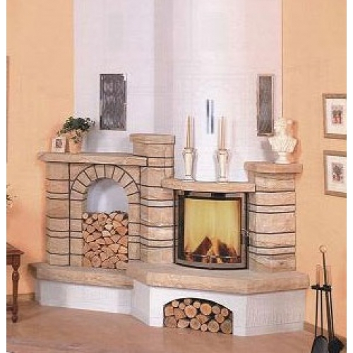 Камин Hark 4/32.4. Угловой камин из натурального колотого камня Sandstein bossiert, Simse geschliffen.
