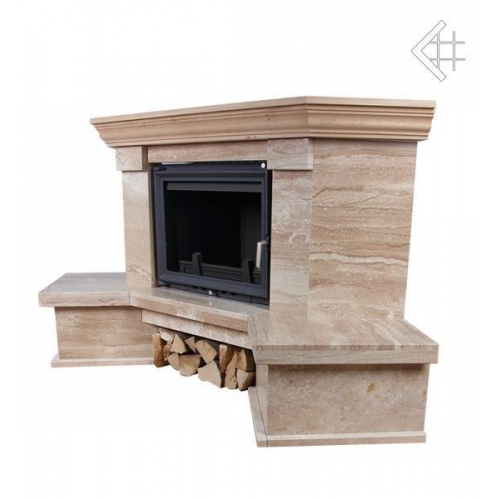 Угловая модель камина известной польской фирмы Kratki. Материал камина - полированный мрамор Breccia Sarda. Балка выполнена из массива дуба. К Amore подходят чугунные топки Maja, Antek, Zuzia или Eryk.