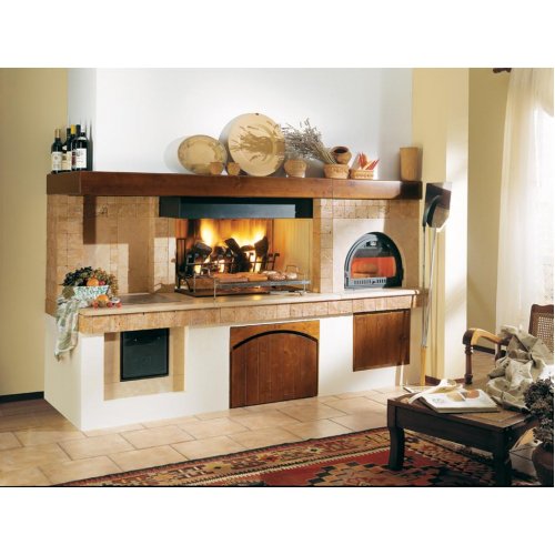 Кухонная стенка для дачи является значимым предметом, с помощью которого вы выполняете множество полезных функций. Это всегда приготовление пищи. Да и без кухонной стенки никуда – это основная мебель на вашей кухне! Но что, если к кухонной стенке добавить один полезный элемент – камин. Ведь она сразу преобразится и появится масса дополнительных полезных качеств. Именно такую модель выпустили мастера компании Piazzetta, создав идеальный вариант кухонного камина, который помещен в кухонную стенку. Этот камин сочетает в себе сразу три полезных очага: это традиционная топка, которая имеет все для приготовления пищи на открытом очаге, также имеется закрытая топка и духовой шкаф. Этот полезный набор поможет вам в быстрые сроки приготовить полезную качественную еду, причем очень быстро. Камин Maremma нельзя назвать обычным камином. Он пригоден исключительно для установки в кухонном пространстве или столовой. Приемлимо установить подобный камин в загородном доме или на даче, где он будет приносить очень много пользы – это качественная помощь в обогреве дома, а также приготовление еды. А как красиво наблюдать за игрой пламени через открытую топку. Топка открытого плана сделана с учетом всех норм безопасности. Пламя в топке имеет стандартно выработанный размер топлива, который станет отличным способом регулирования подачи огня, и вы можете быть абсолютно спокойны.