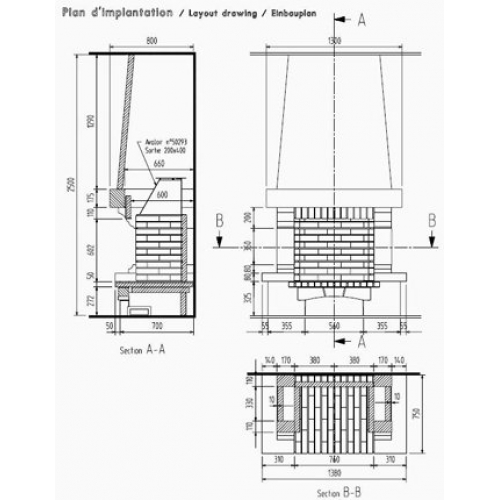 | Описание, материал | Размещение | Открытая топка | Закрытая топка |