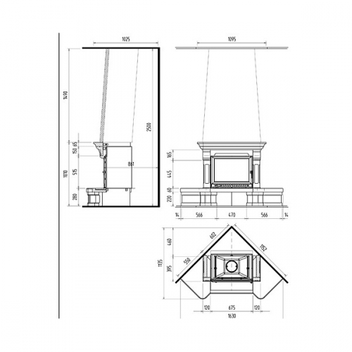 • Материалы : Золотисто-песочный Edelroc или белый Edelroc + топочная плита из кирпича