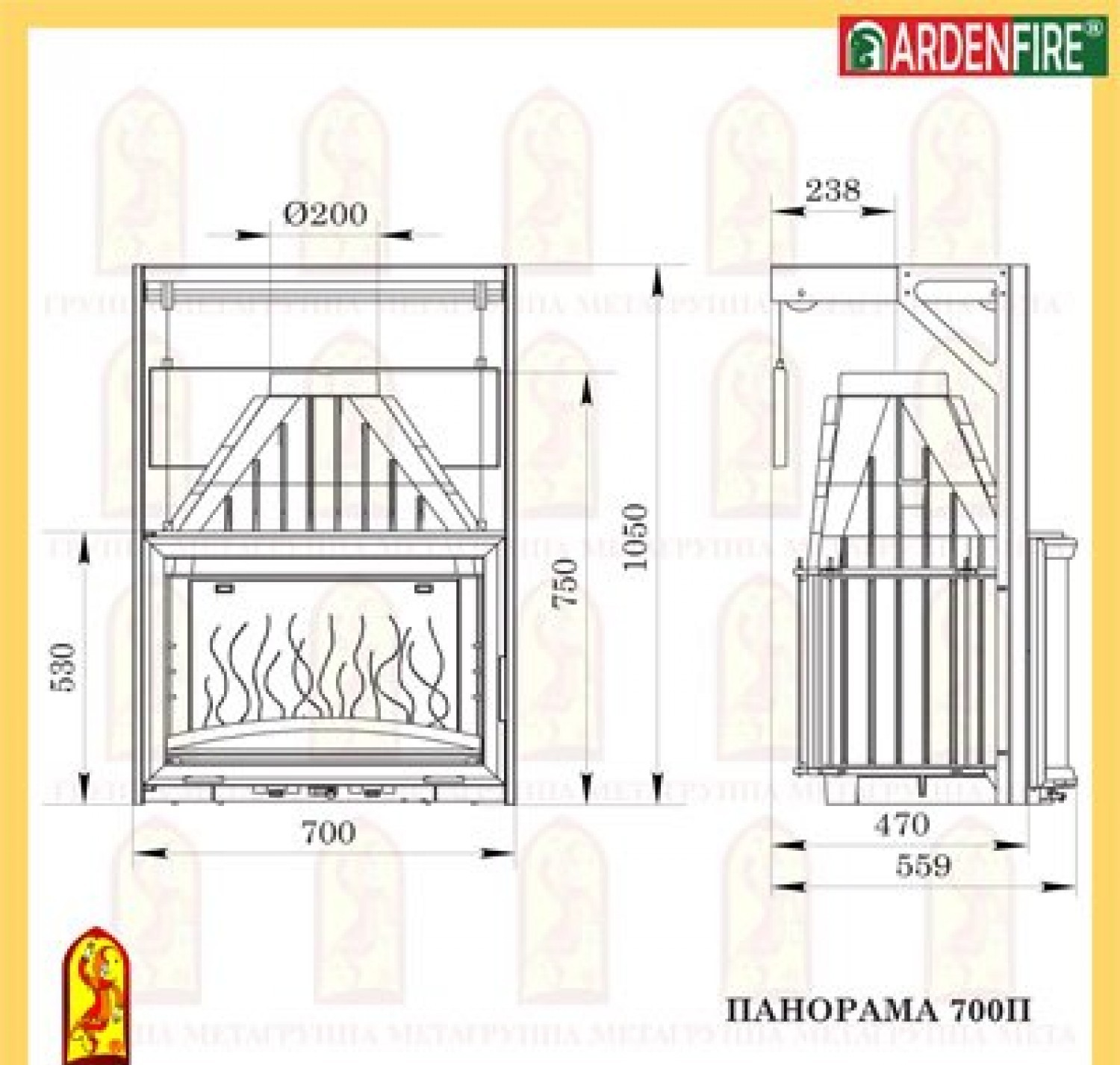 Каминная топка Мета панорама 700п