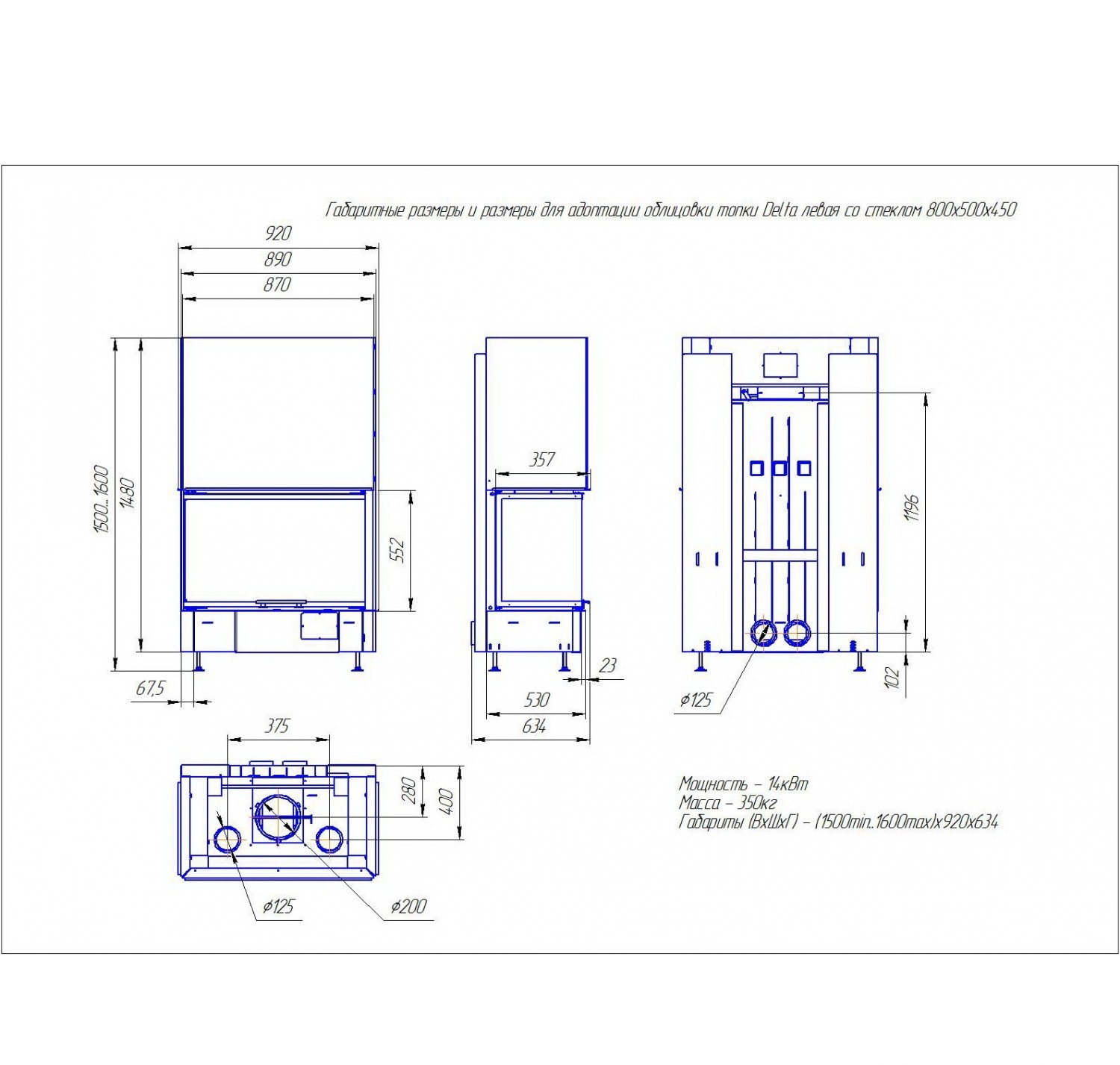 • Диаметр дымохода, (мм)