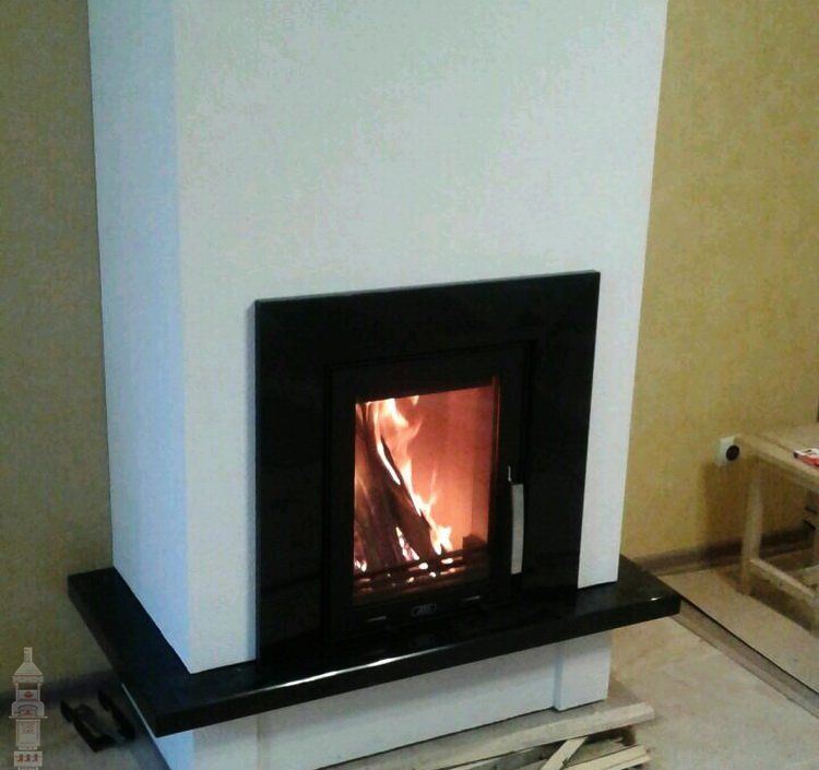 Дверь каминной топки декорирована стеклом. Такие стекла делаются всего в 2 странах: Германии и Японии. Оно выдерживает температуру до 750 градусов. Но если ударить кочергой, то может треснуть. Через стекло вы любуетесь огнем и следите за прогоранием дров и подкладкой новых. В этом камине использовано прямое остекление.