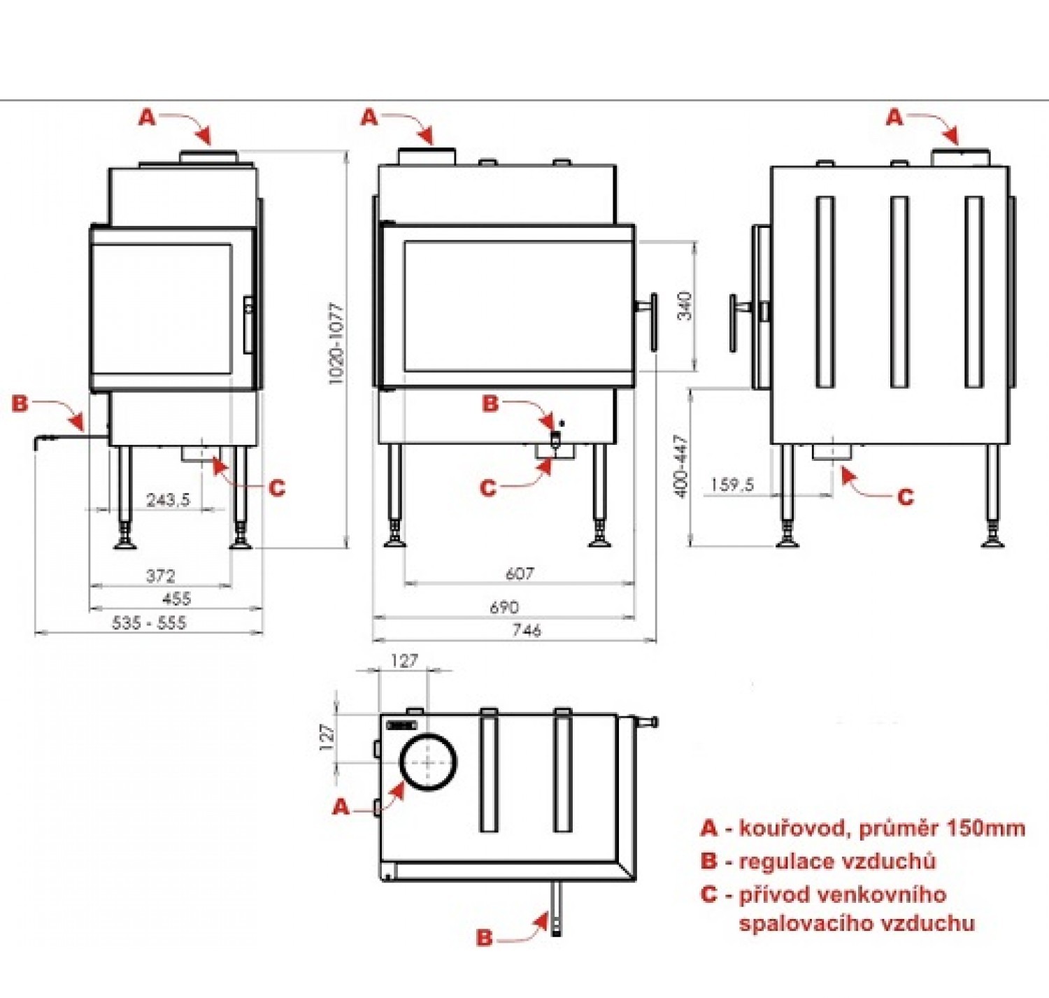 Топка Cardiff имеет стекло на две стороны — фронтальную и боковую. Стекло цельное. Отметим, что даже такая мощная топка из стали весит заметно меньше чугунных аналогов, поэтому стальные топки рекомендуется использовать для помещений с недостаточно укрепленным фундаментом. Благодаря системе двойного дожига, первичный воздух, подаваемый в нижнюю часть топочной камеры, разделяется на два потока: один идет в прямо топку, а другой проходит вдоль ее горячего корпуса и попадает в топочную камеру уже нагретым, позволяя сгорать несгоревшим остаткам топлива. Это не только удлиняет интервал между закладками топлива, но и помогает уменьшить количество вредных выбросов в атмосферу. Каминная топка Cardiff имеет вытянутую прямоугольную форму и интересный дизайн, поэтому может быть интегрирована в самый современный интерьер.