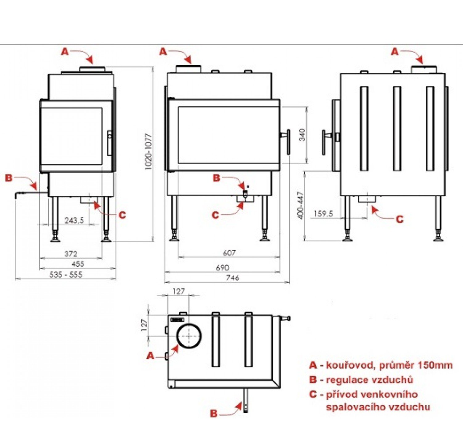 Существует правосторонний и левосторонний вариант топки.