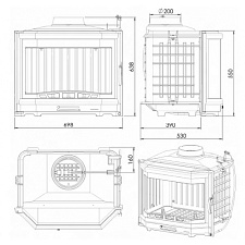 Топка, дверца квадратная открывается вбок и вверх, съёмная ручка.