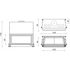 Стальная топка с вентилятором, дверца чёрная с боковым открыванием.