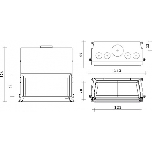 Циркуляция горячего воздуха может осуществляться за счет натуральной конвекции или при помощи принудительной вентиляции (для чего предусмотрен набор разводки горячего воздуха в смежные помещения, состоящий из 4 отрезков гибкой трубы, также в коробе имеются 4 отверстия для подсоединения патрубков).