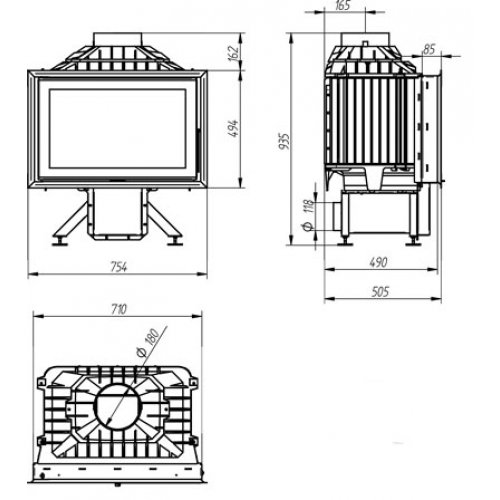 - Диаметр дымохода, мм: - 180