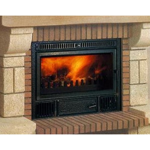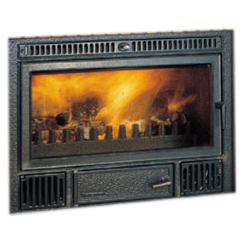 Высокоэффективная встраиваемая каминная топка C-3/60 из огнеупорного чугуна, с прямым фасадом и дверкой с керамическим стеклом. Имеется предохранительный термостат.
