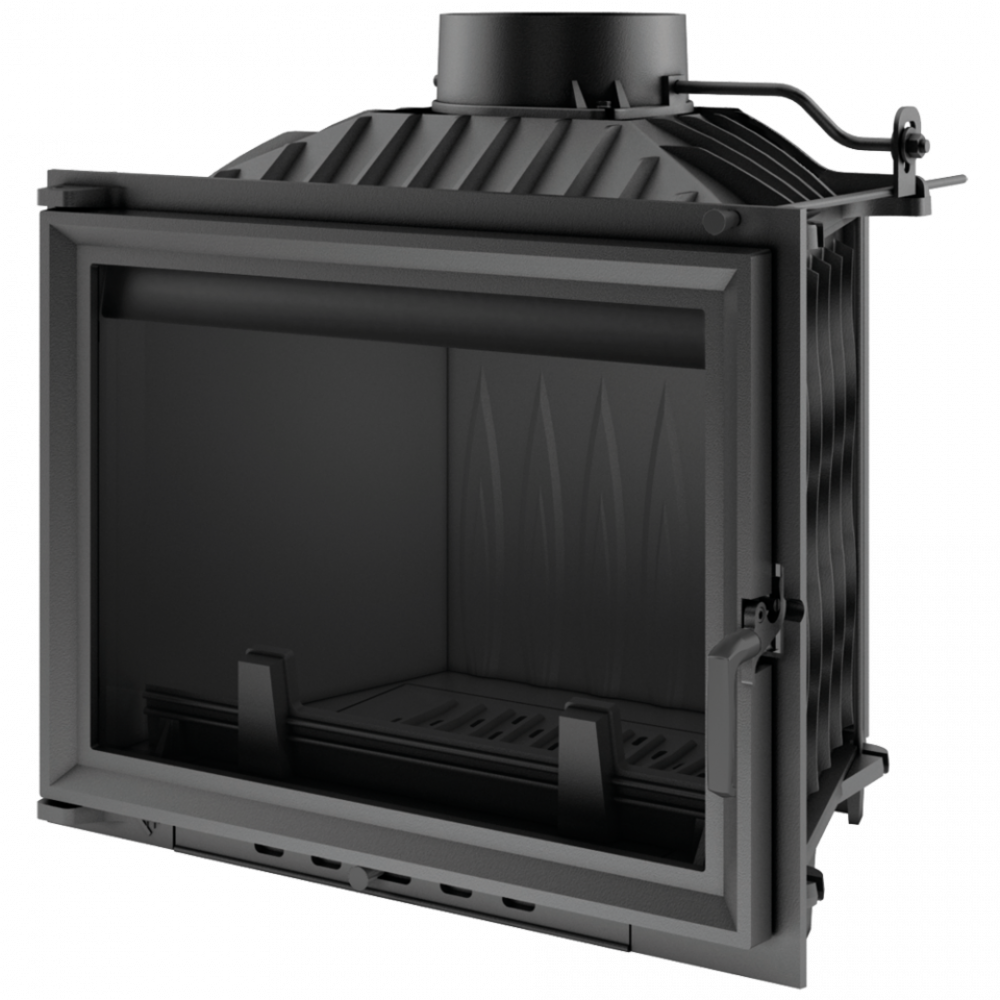 - Повышенная эффективность работы топки благодаря ручному регулированию тяги дымохода с помощью встроенного шибера.