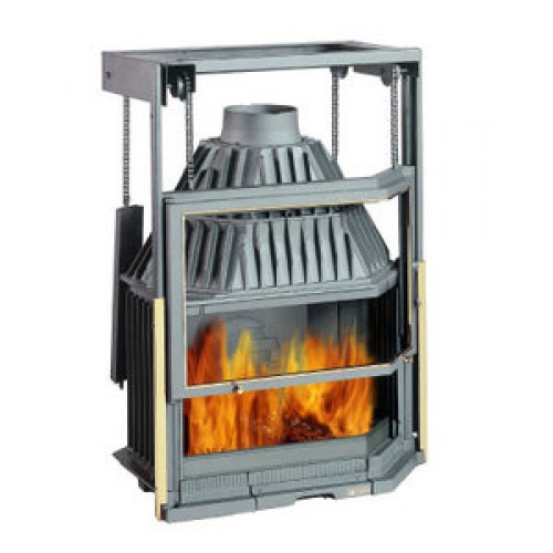 Вертикальное и боковое открывание, система подъема двери при помощи контргруза. Латунная рамка.
