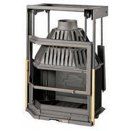 Вертикальное и боковое открывание, система подъема двери при помощи контргруза. Латунная рамка.