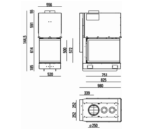 • Отсутствие нижней рамки стекла, увеличивает обзор огня.