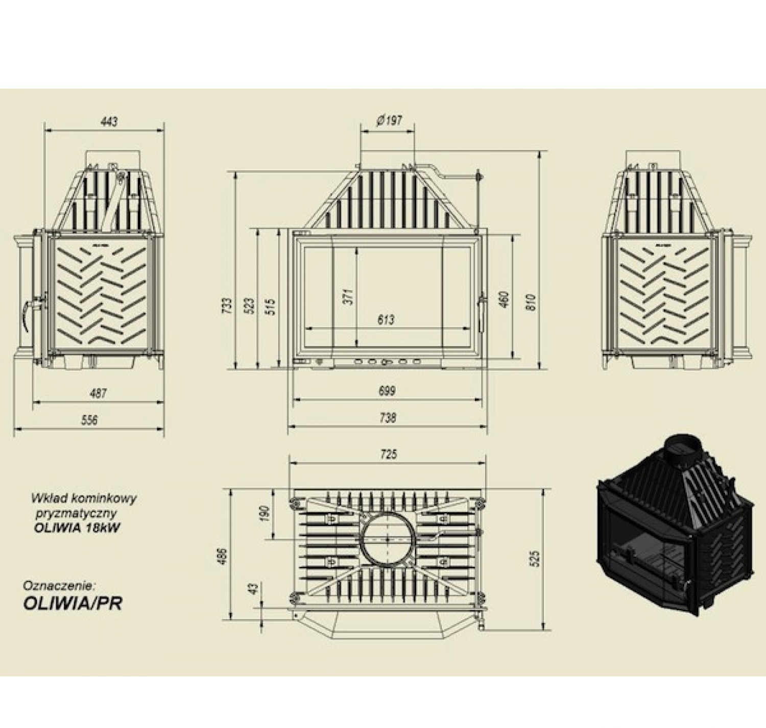 Каминная топка Oliwia/PR призматическое стекло