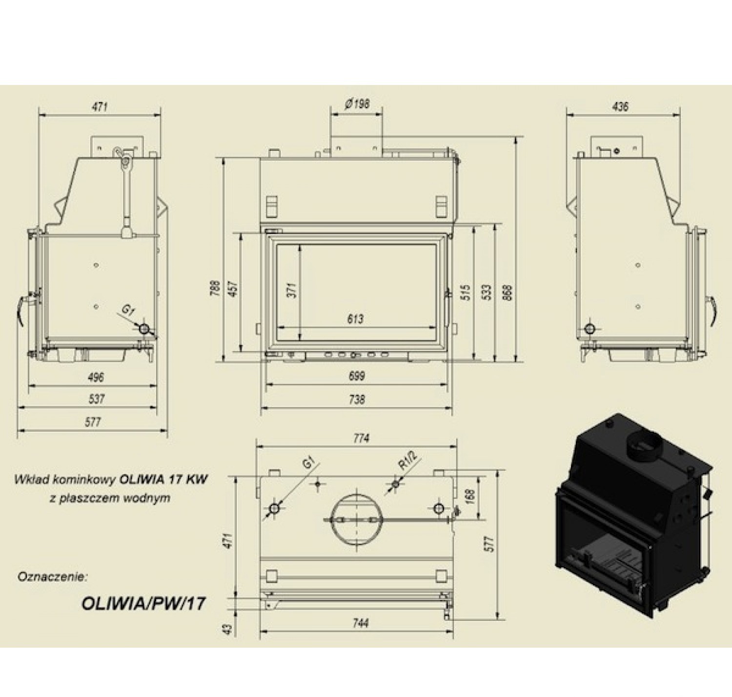 Каминная топка Oliwia/PW/17 с водяным контуром