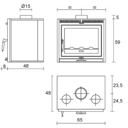 • Проем:  Дверца из эмалированной стали с жаропрочным стеклом, выдерживающим температуру до 750°, с самообдувом. Дверца на петлях.