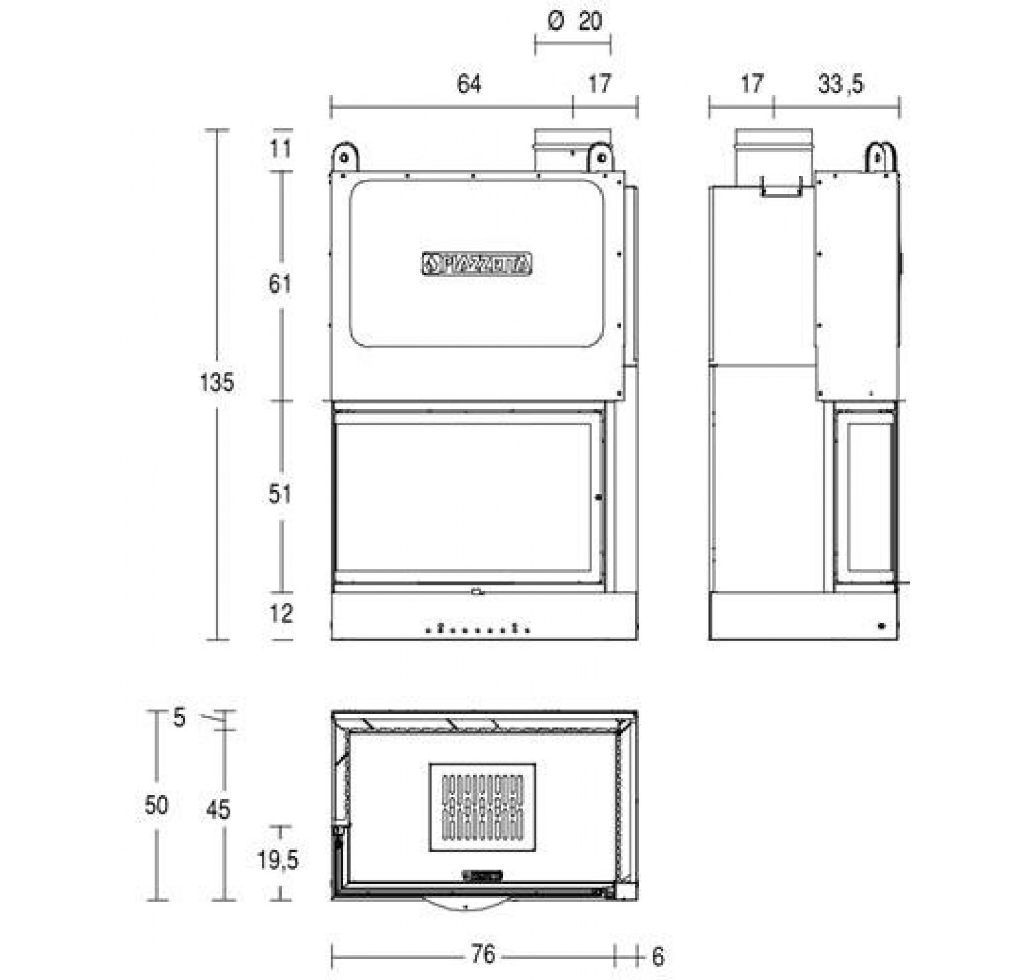 Каминная топка PIAZZETTA MA 280 SL DX произведена в Италии.