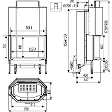Технические характеристики топки 800 FV T Bi Vision Droit, с турбиной