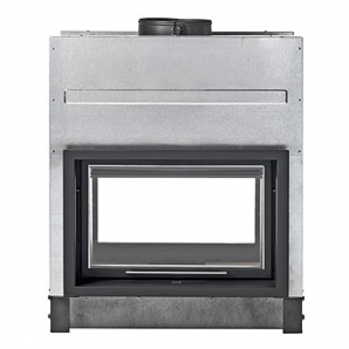 Каминная топка со сквозным жаростойким стеклом. Обзор огня с двух противоположных сторон. За счёт отделки внутренней части реверсивной футеровкой, топка сохраняет тепло длительное время. Система «чистое стекло», функция «вторичного дожига» дымовых газов, экономичный расход древесины. Обе двери с подъемным механизмом, надёжный фиксатор обеспечивает открытие дверцы для прочистки стекла.