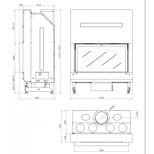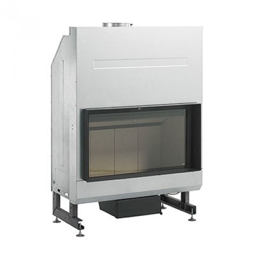 Дровяная топка с горизонтальным прямым стеклом. Корпус выполнен из огнеупорной стали, огнеупорная футеровка. Дверь с подъемным механизмом. Надёжный фиксатор обеспечивает открытие дверцы для прочистки стекла. Благодаря системе обдува дверцы по всему периметру, стекло топки остается чистым долгое время. Представленная топка оборудована выдвижным зольником.